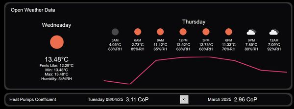 A recent addition to the dashboard is Nova’s Daily Heat Pump Coefficient widget.