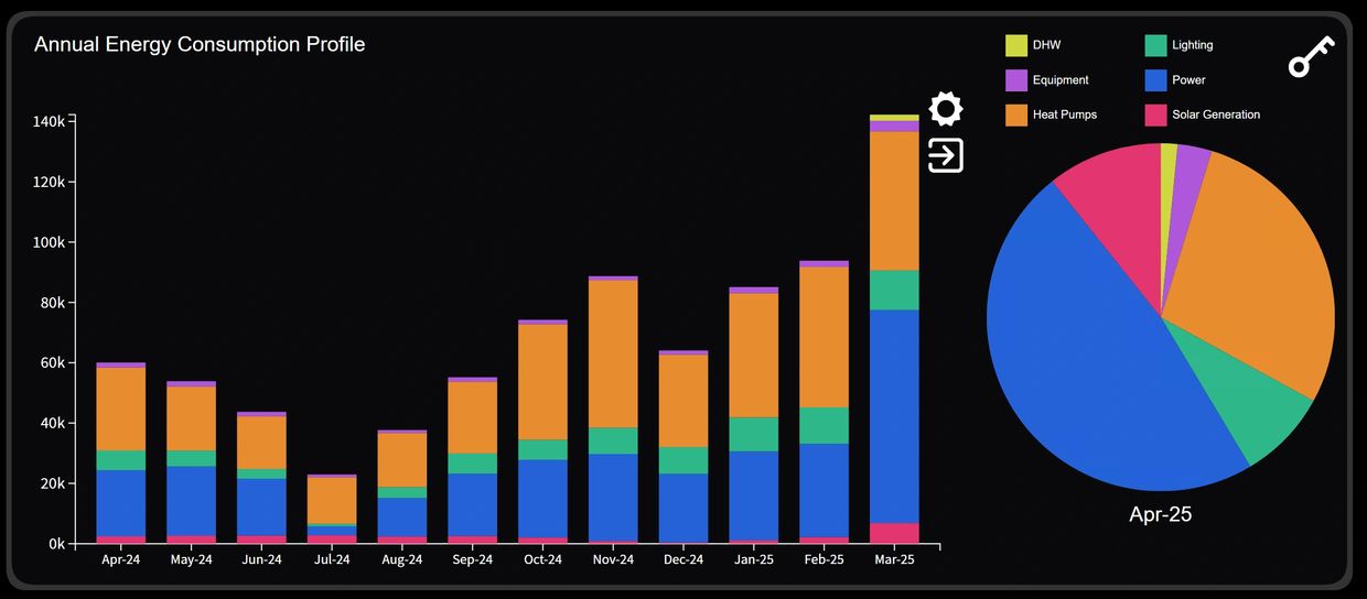 Using Nova’s Annual Energy Consumption widget, the campus has been able to clearly visualise and categorise its energy use across key systems: